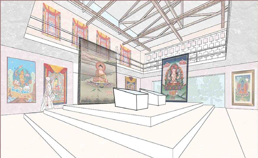 The design intends to capture the essence of Gangtok by creating a visual library of Thangka paintings while being a Community and Tourist Center for Research and Practice.