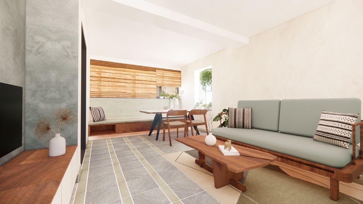 The apartment is designed with a contemporary aesthetic that emphasizes the use of natural materials and oxides. These features will be complemented by a modern color palette and sleek, minimalist furnishings that enhance the contemporary look. The design will prioritize clean lines, natural light, and thoughtful detailing, creating a stylish and comfortable retreat.