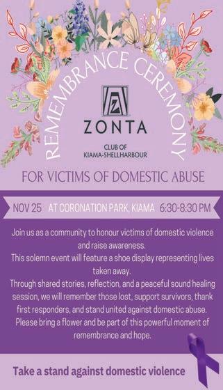 membrance ceremony for victims of domestic violence in NSW on November 25th in Coronation park.
