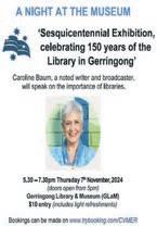▶To book please www. library.kiama.nsw. gov.au/events or phone 42331133. For further information please contact Carolyn Vaughan on 0418 480690.