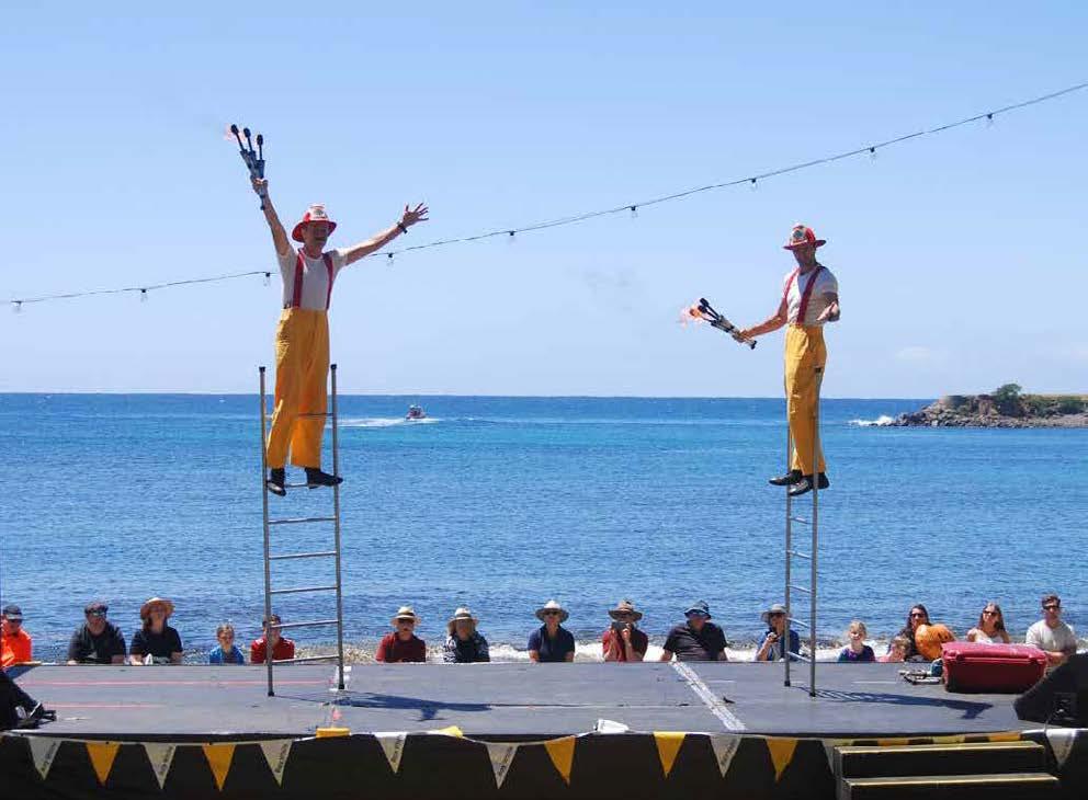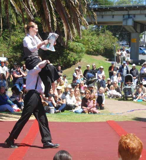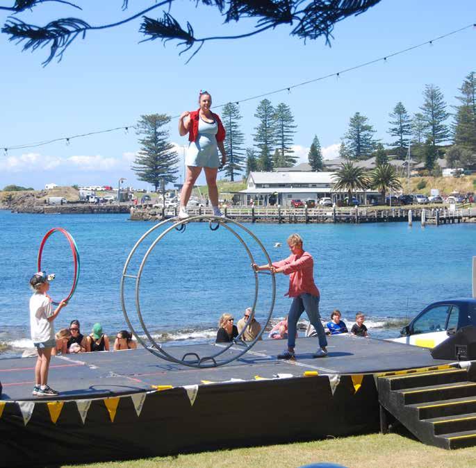 ping up. Day two welcomed the Ray White Raft Race at midday, bringing out the Kiama community’s friendly competitive spirit with last years winner coming 2nd (with a handicap) and two family teams for 1st and 3rd place. Overall, the KISS Festival successfully engaged the community with a fun-filled weekend. The wide range of free and quirky activities and performances, was a nod to the creative gift Tamara and David have. Kiama is lucky to have them. We’re already looking forward to what next year has in store. ▶If you missed the action on the weekend, the Kazador tent will remain at Black Beach until 24 November. The full schedule of performances can be found here: https://www.thekazador. com/event-list.