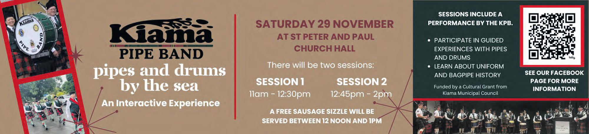 For more information, phone 1300 305 695, email rezoningpathways@dpie. nsw.gov.au or attend one of the community dropin sessions which will be held from 1-4pm on 11 November at Joyce Wheatley Community Centre, 3-6pm on 12 November at Kiama Farmers Markets and 9-11am on 13 November at Joyce Wheatley Community Centre.