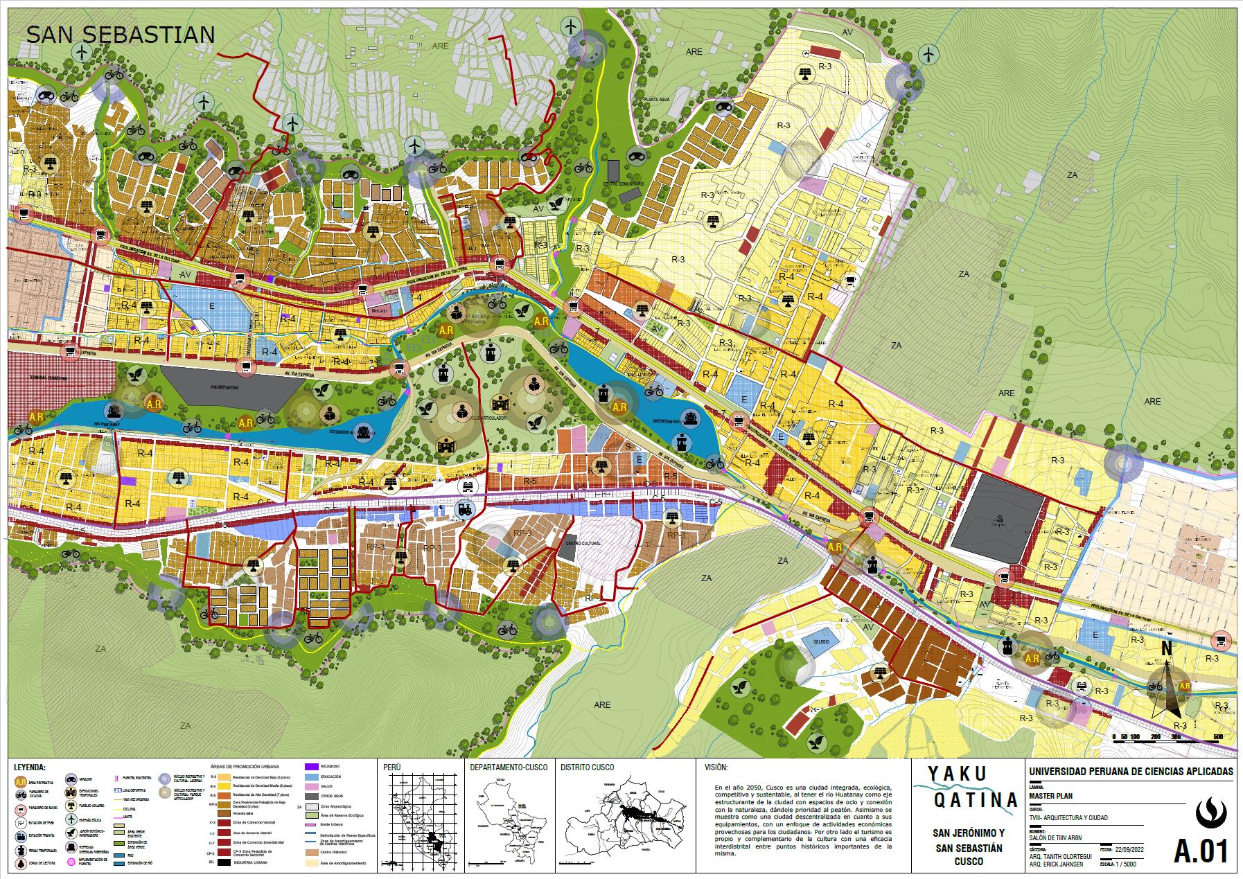 Se trabajó a mayor detalle el Master plan, se representaron con íconos las propuestas y actividades, se plantearon los paraderos y estaciones. Se repre sentaron las áreas verdes y sus dimensiones. Se generaron cortes ara representar las alturas de los equipamientos y las dimensiones de vías.
