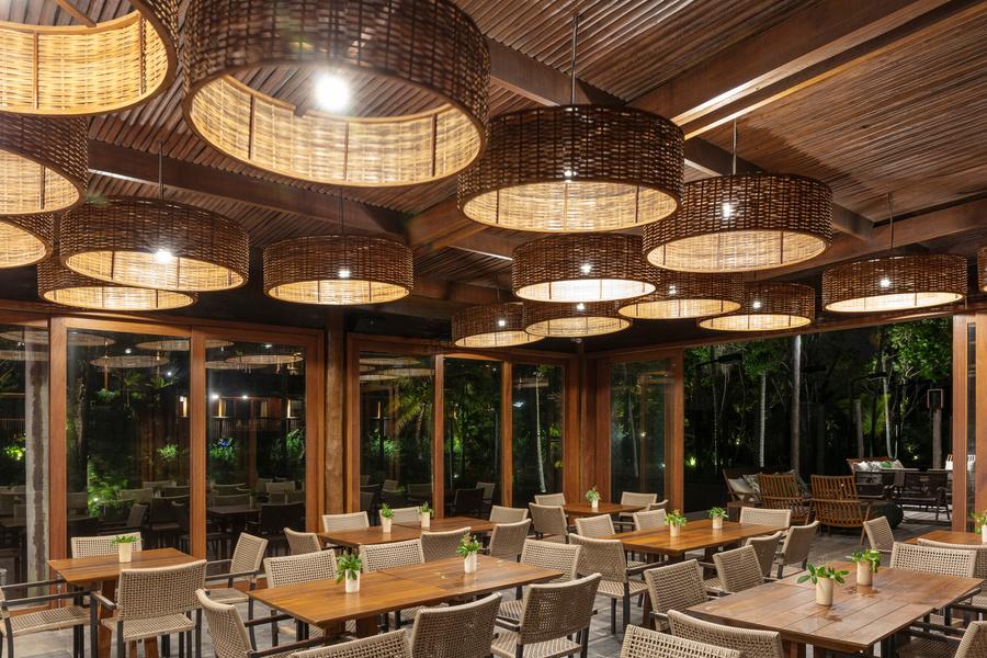 O projeto foi elaborado com características que remontam à arquitetura regional, onde foram aplicados elementos nativos como fibras naturais, madeira maciça, palha, couro e pedras brasileiras.