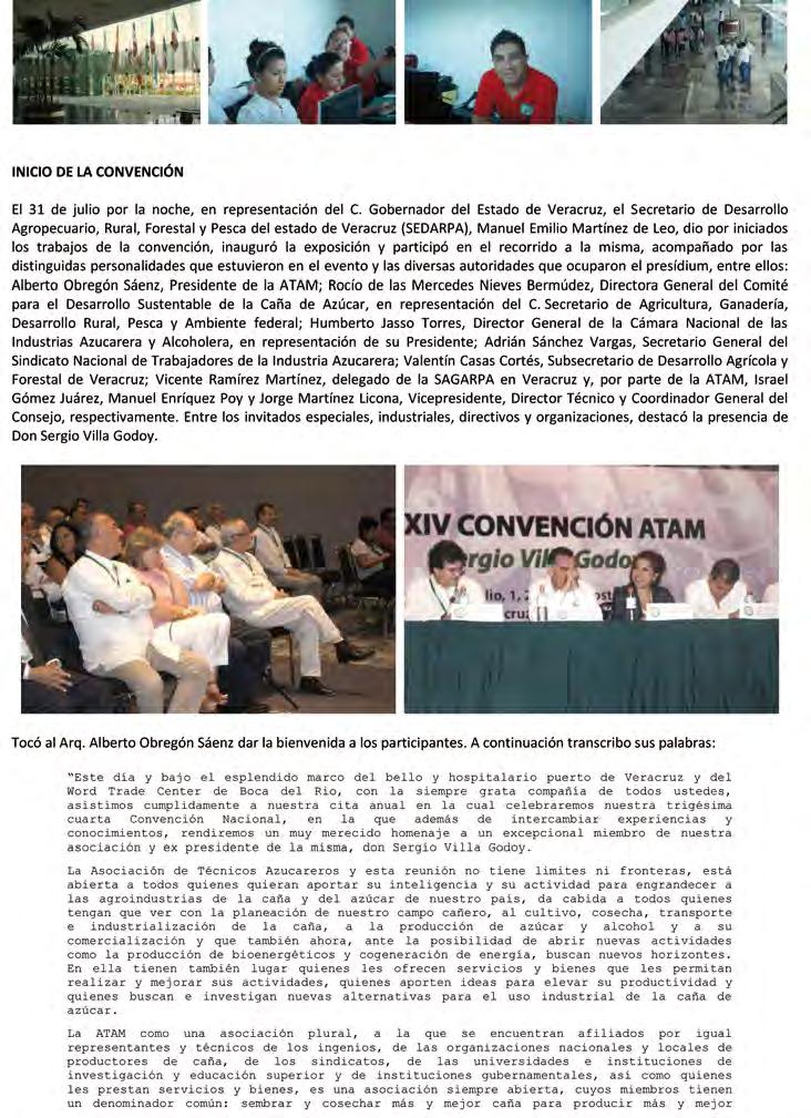 No podía ser diferente, la XXXIV convención de nuestra asociación volvió a refrendar el éxito alcanzado por las últimas entregas; esto, según testimonio de muchos de los participantes en el reconocido evento anual. Boca del Río, Veracruz, se engalanó del dulce sabor de la caña de azúcar durante cuatro fructíferos días, enmarcado con la egregia figura de un azucarero ejemplar, Sergio Villa Godoy, compañero y siempre amigo de todos.