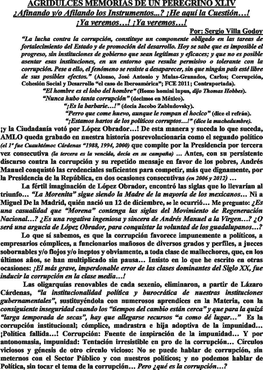 Agridulces Memorias de un Peregrino XLIV ¿Afinando y/o Afilando los Instrumentos...? ¡He aquí la Cuestión…! ¡Ya veremos…! ¡Ya veremos…!