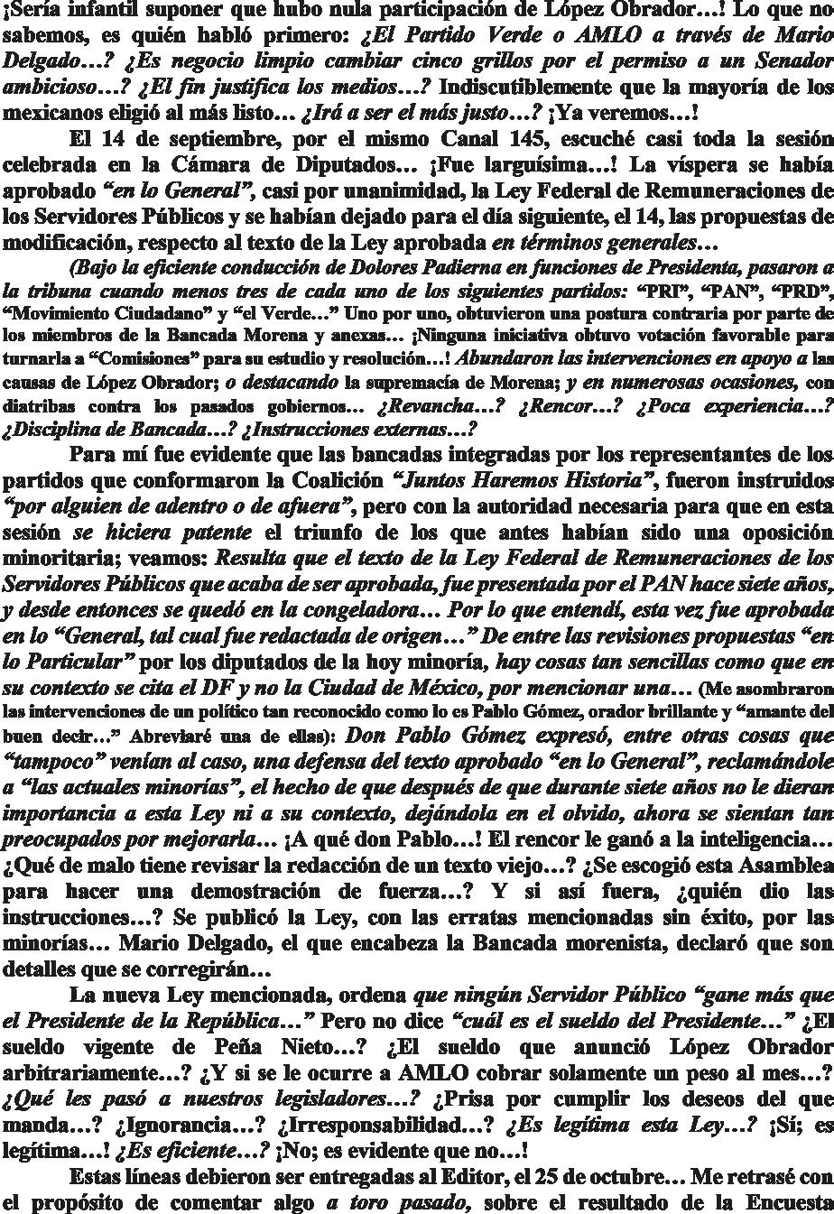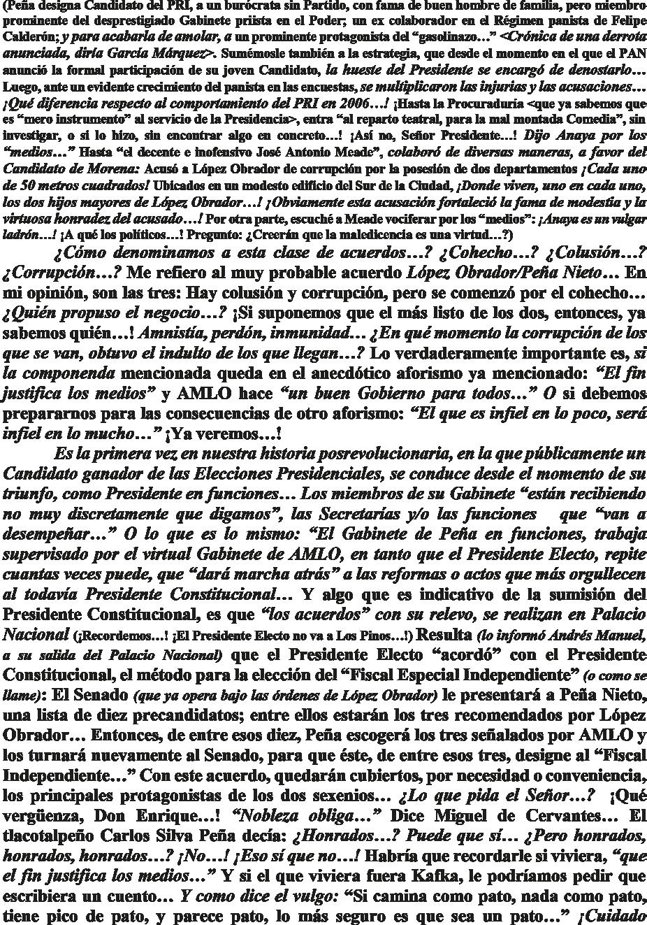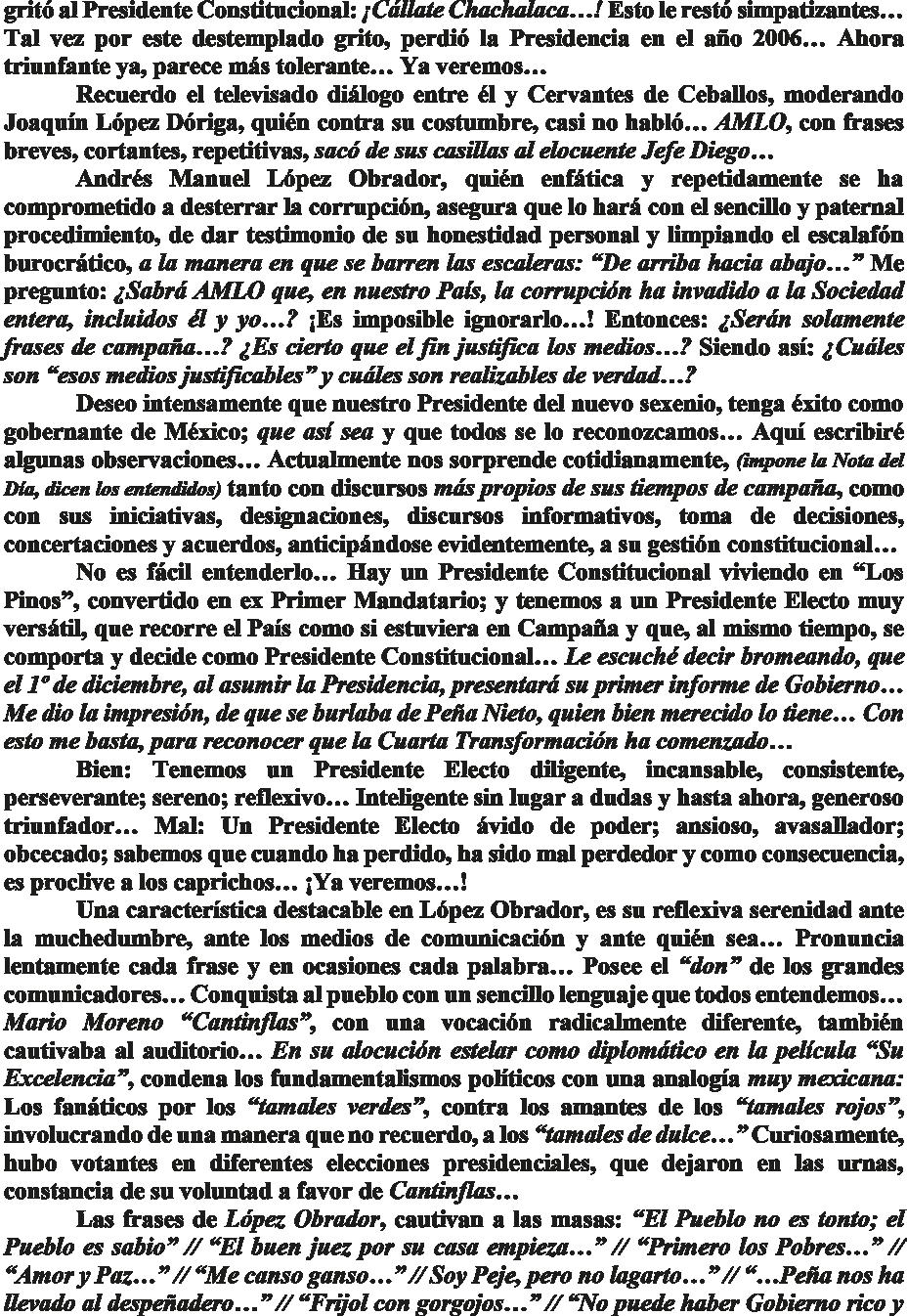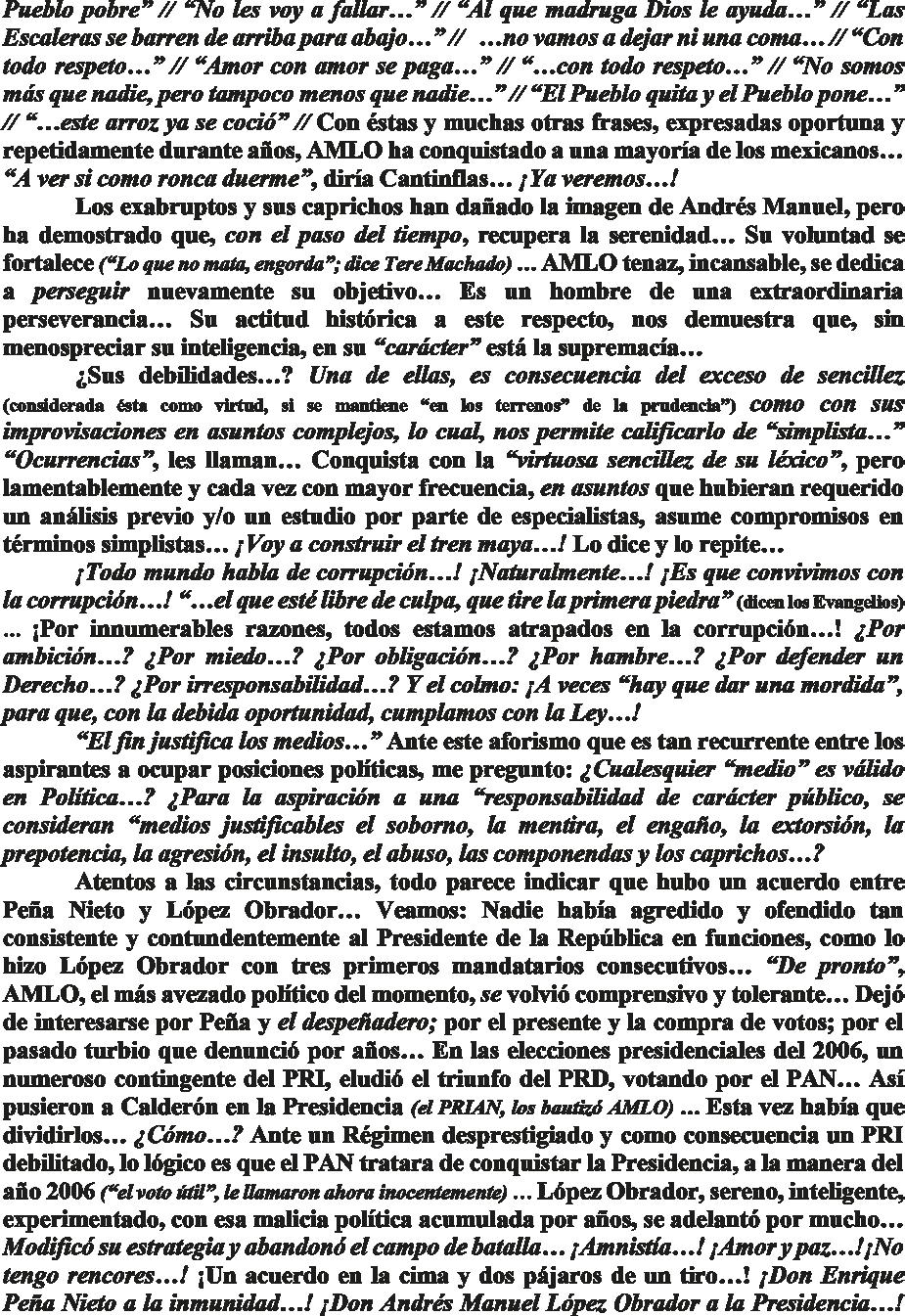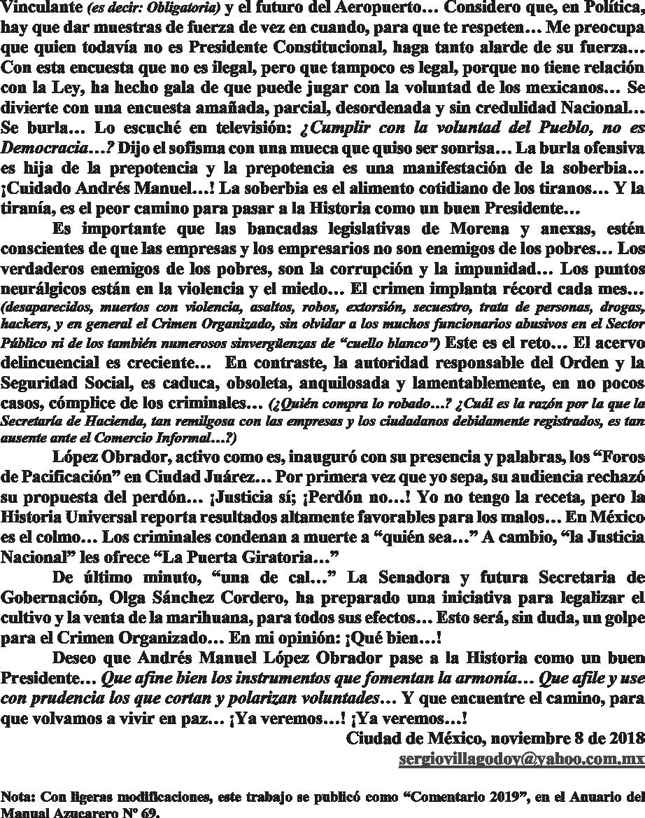 Por otra parte, estando próxima la revisión de los acuerdos de suspensión con nuestros pares allende la frontera norte, esperamos que los nuevos gobernantes tengan el tino necesario para lograr un mejor acuerdo para los intereses nacionales, no obstante el desbalance de posiciones que corre en estos momentos en contra de este lado; la posición geográfica privilegiada de nuestro país, debe ser una carta valiosa de negociación al efecto.