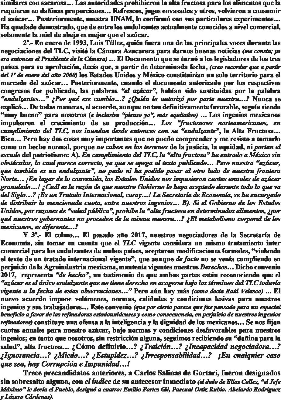 ¿Podría enviar un mensaje al gremio azucarero de México?