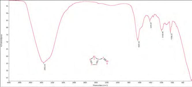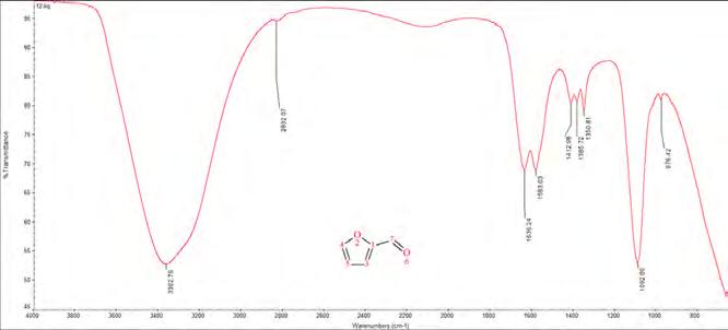 1583.03 2,5-Furano Disustituido (Estiramiento del Anillo) 1412.98 Hidroximetil CH2 1385.72 Aldehído Aromático (Balanceo) 1092.05 2-Furano Sustituido C4O