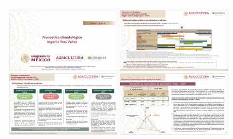 En los últimos dos años la parte meteorológica y climatológica se han fortalecido en el CONADESUCA, mediante la generación de pronósticos que ayudan a los tomadores de decisiones de la agroindustria de la caña de azúcar a minimizar riesgos asociados a eventos del tiempo-clima y ofrecen herramientas que contribuyen a la planeación y ejecución de labores tanto en campo como en fabrica. Asimismo, se ha trabajado muy de cerca con Ingenios azucareros incorporados al Sistema Estratégico de la Caña (SIE-CAÑA), elaborando pronósticos climatológicos a partir de modelos numéricos de predicción, mismos que han tenido buena aceptación por parte de los ingenios. En el presente trabajo se ejemplifica el proceso y los resultados obtenidos en el Ingenio Tres Valles.
