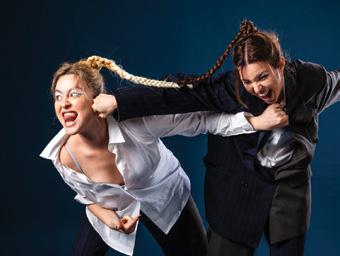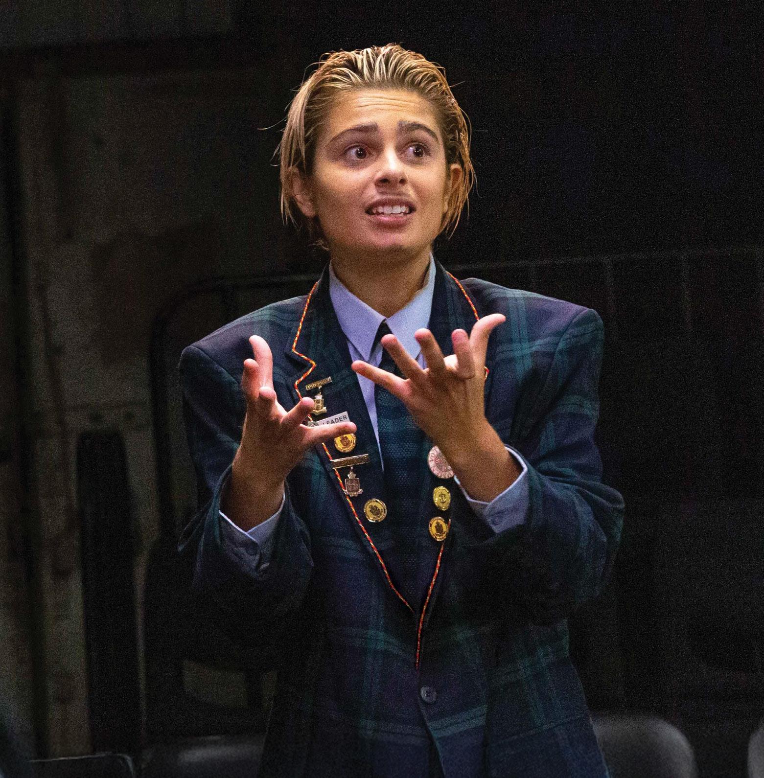 PERFORMED BY A FEMALE and non-binary cast (Myfanwy Hocking, Fran Sweeney-Nash, Kidaan Zelleke and Tahlia Jamieson) in drag, the show unfolds in real time as the boys are locked in a classroom for their one-hour prep window, and forced to argue that “feminism has failed women”.