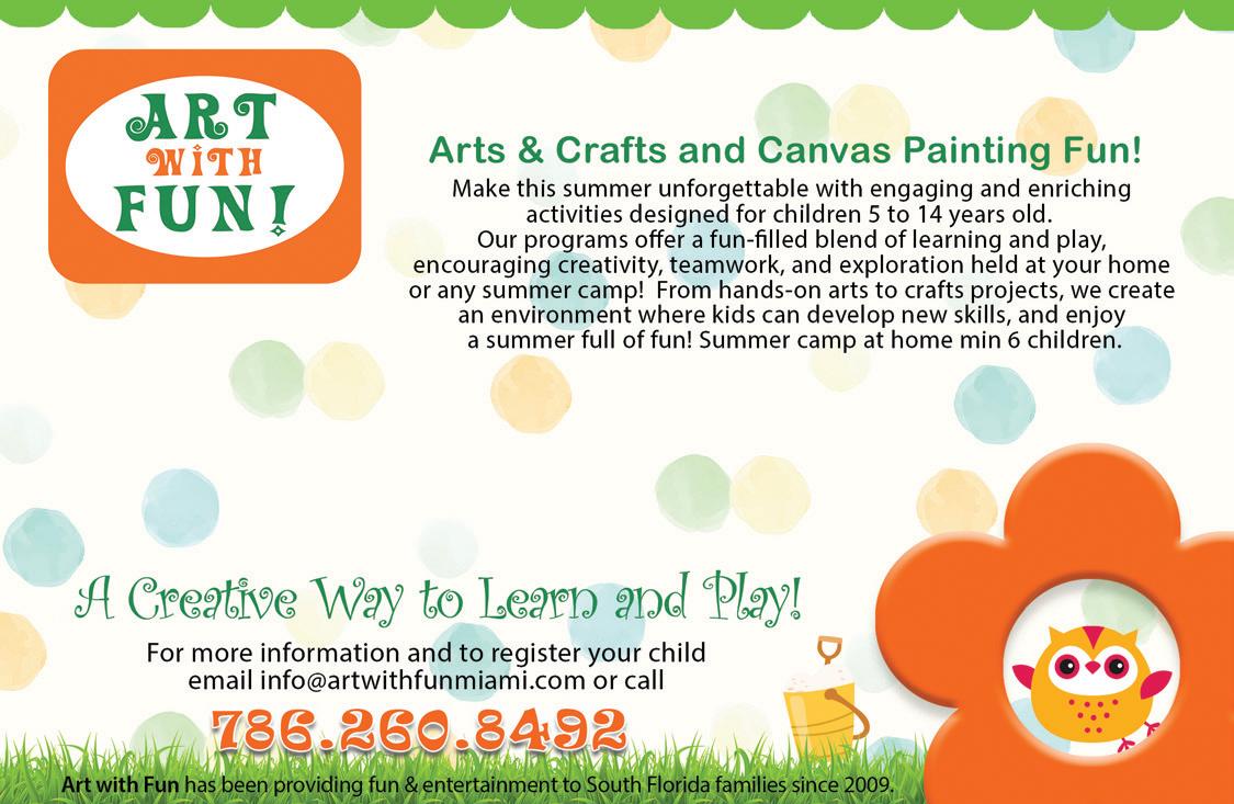 Volume 12. Issue 6, Kiddos Magazine is published bi-monthly in the U.S.A. by V&L Design LLC. All content copyright ©2024 V&L Design LLC. All rights Reserved. Reproduction in whole or in part without written permission of the publisher is prohibited. Kiddos Magazine assumes no responsability for claims and content of advertisements. This Magazine is designed for parents with children ages 3 to 15 years old. To become a distribution outlet for Kiddos Magazine please call 786.260.8492. magazine ...it’s just about kids