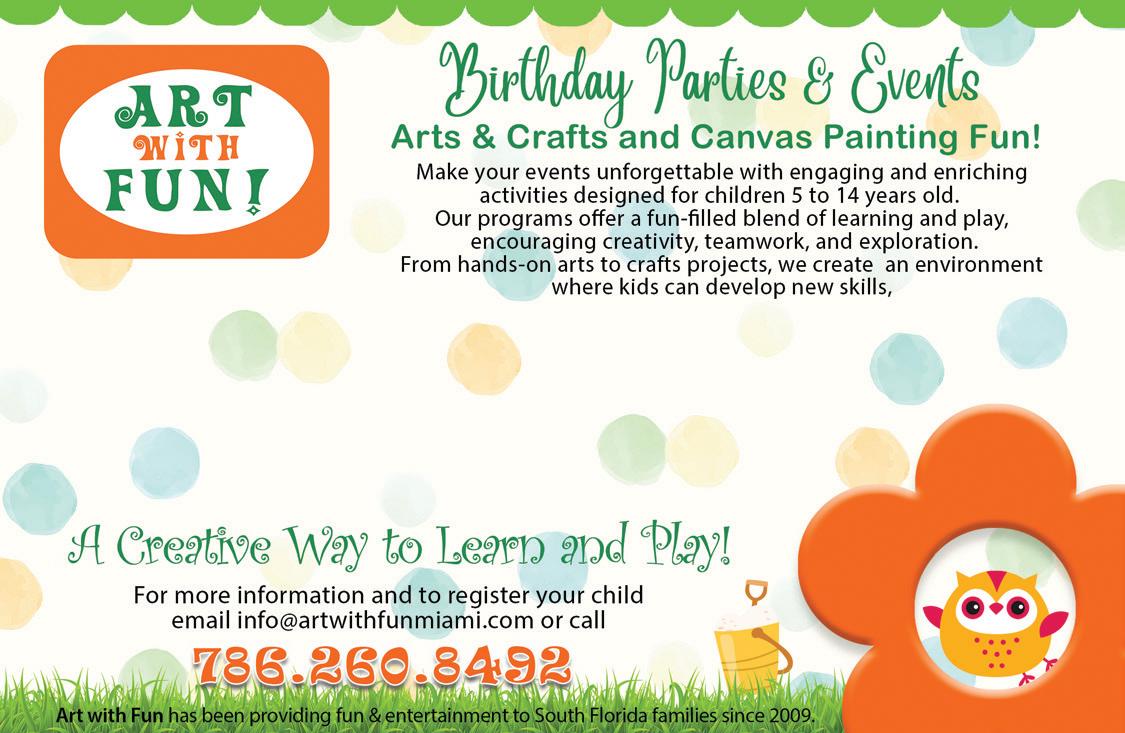 Volume 13. Issue 2, Kiddos Magazine is published bi-monthly in the U.S.A. by V&L Design LLC. All content copyright ©2024 V&L Design LLC. All rights Reserved. Reproduction in whole or in part without written permission of the publisher is prohibited. Kiddos Magazine assumes no responsability for claims and content of advertisements. This Magazine is designed for parents with children ages 3 to 15 years old. To become a distribution outlet for Kiddos Magazine please call 786.260.8492. magazine ...it’s just about