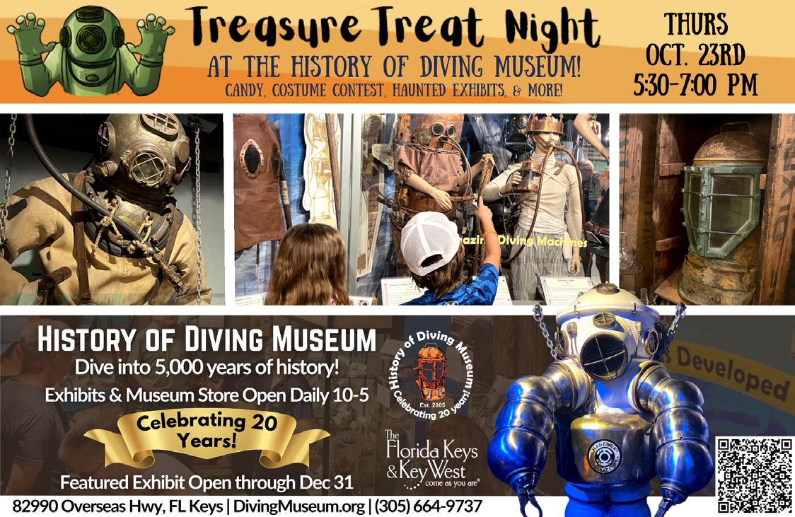 The History of Diving Museum is a nonprofit 501(c)(3) organization dedicated to preserving the history of underwater exploration. It’s open daily from 10 a.m. to 5 p.m. , located at Mile Marker 83, Islamorada, Florida Keys. k