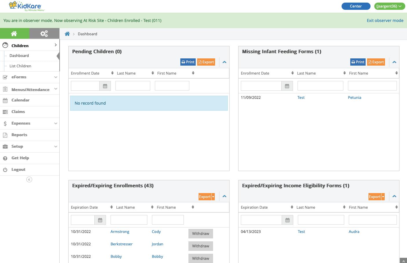 KidKare's Observer-Mode allows for transparent, read-only access to daily records of all program participants, across all program types.