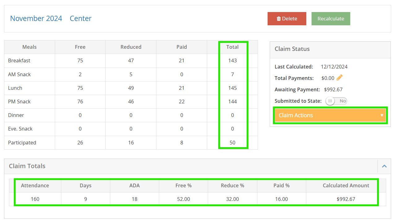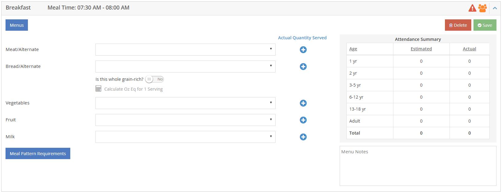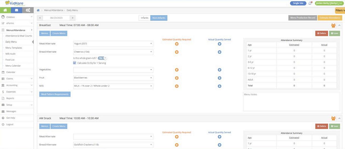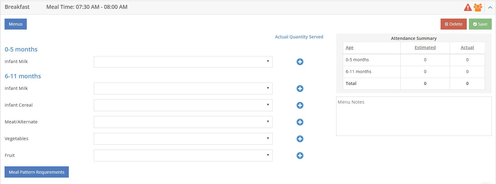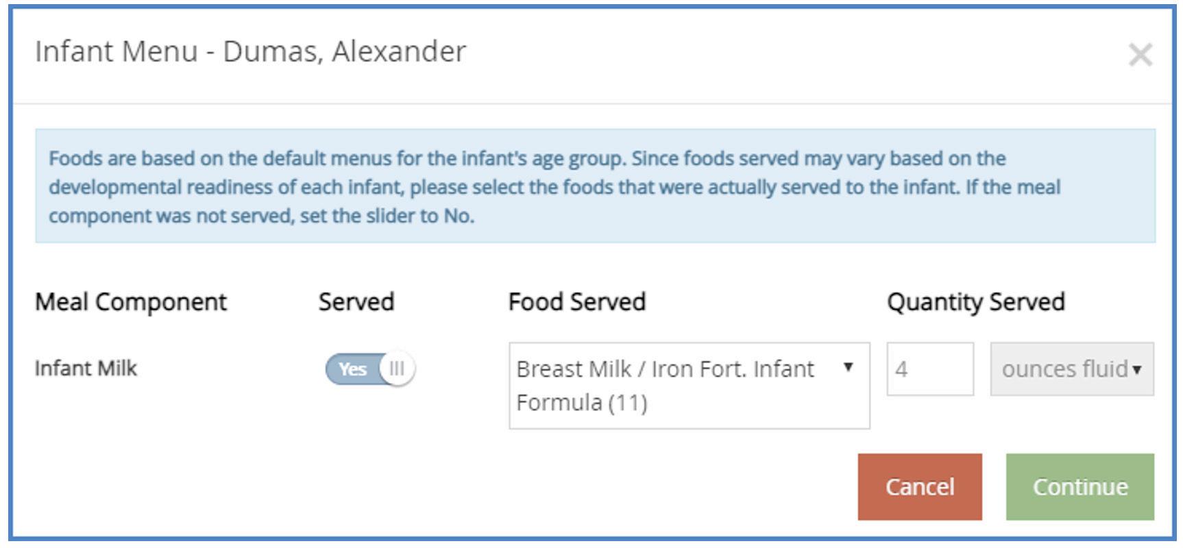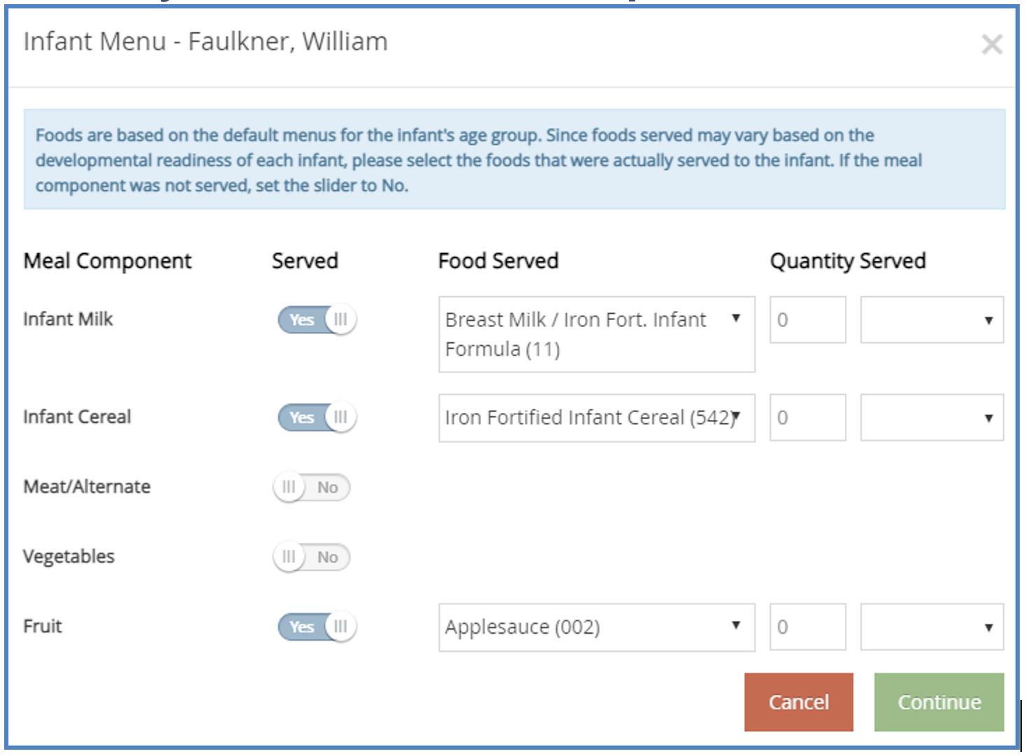• Recording Meals for Infants Record Attendance & Meal Counts