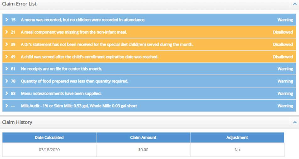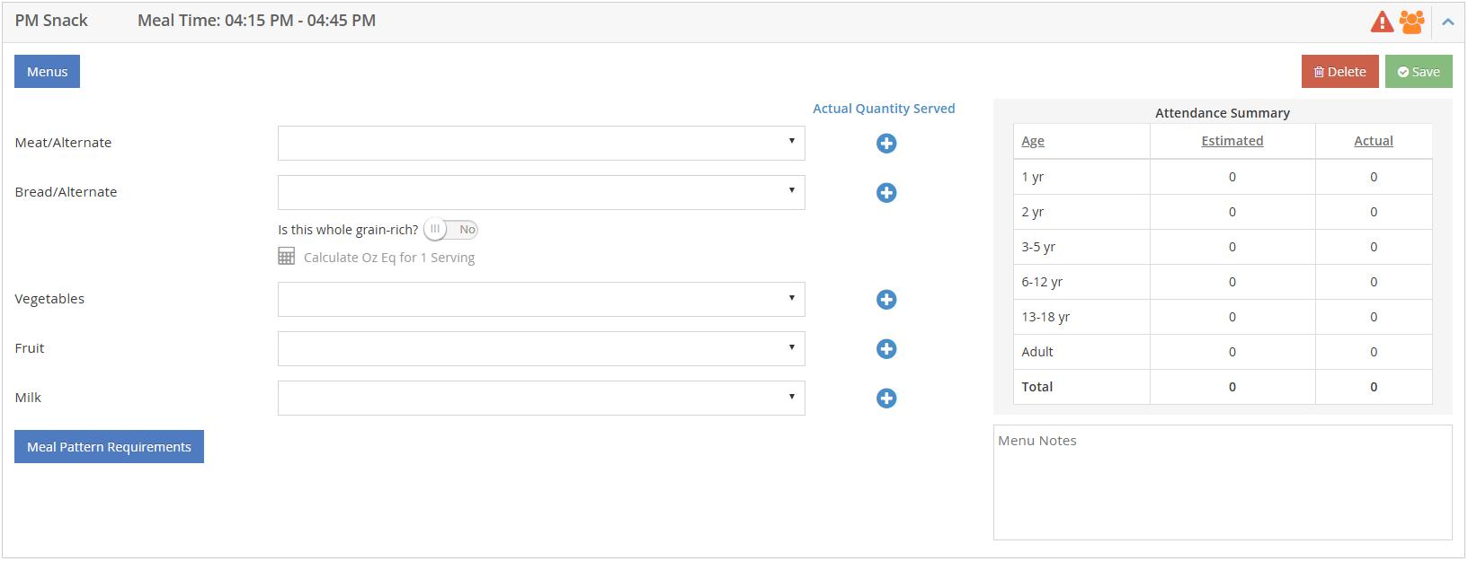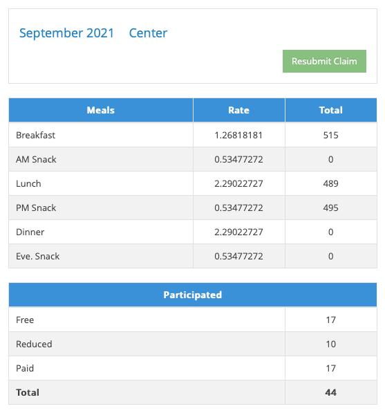 ◦ CACFPMeals:CACFP information, including CACFP start date, approved meals, servings, and serving times. This is also where you will see which AtRisk meals are served if you offer AtRisk meals at your site.