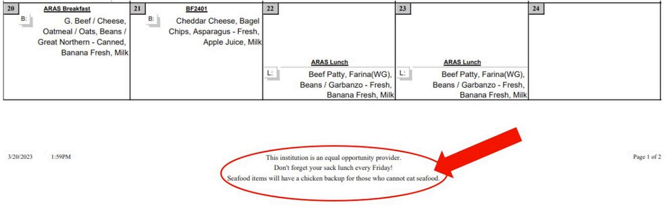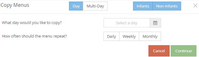 - Weekly: Click the Select Day box and select a day in the week to send. Menus for dates in the same week are attached.