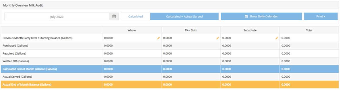 - Monthly: Click the Select Month box and select the month for which to send menus.