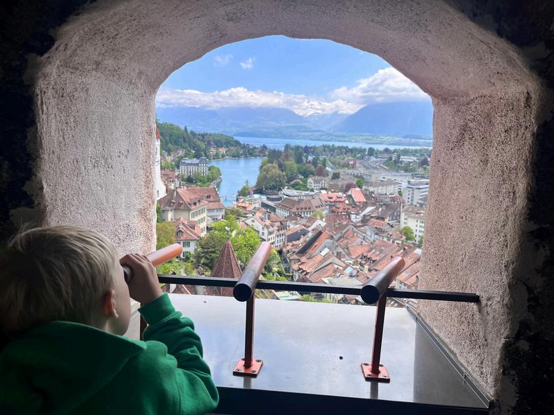 Leaving home mid-morning and having a lunch stop (2hrs away) in the picturesque town of Thun, overlooking the lake with the same name. We enjoyed a lunch at restaurant along the river. After lunch we went to visit Thun Castle, a historic landmark with great views. Our kids loved exploring the castle's towers, there is a fun little treasure hunt to do that ends in a little present.