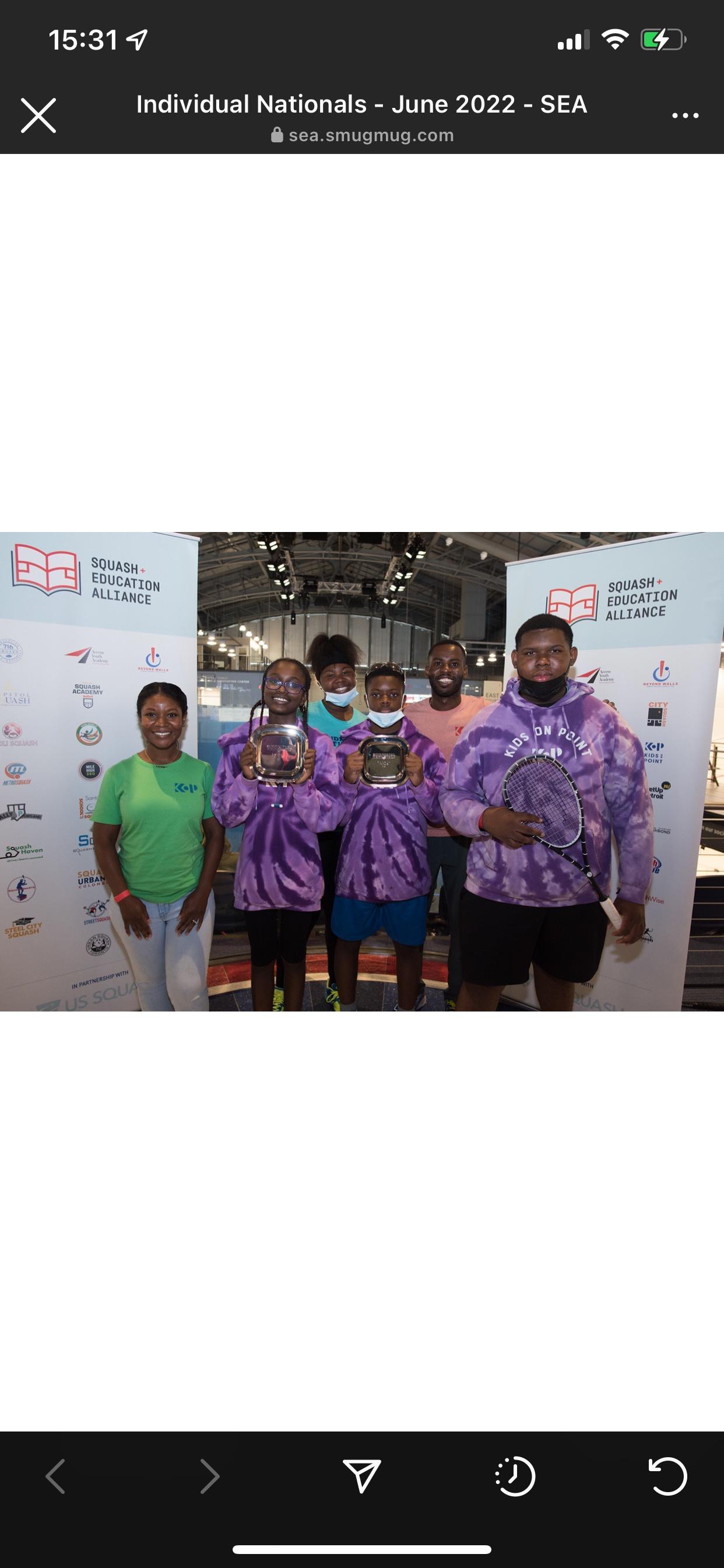 Top Left Students began fitness testing this year to track improvements in physical well being Top Right Four of our students had the opportunity to compete in the Squash Education Alliance's 2022 Individual National Championship in Philadelphia Taj finished in third place and Ja'mya came in 5th place Bottom Students gather to hop into the Kids On Point van for a feild trip