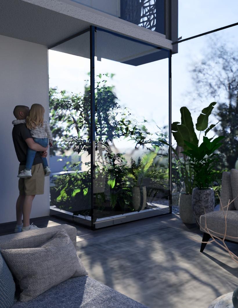 The overall goal is to provide a serene and sustainable living experience for residents in an urban setting.with multi-functional zones that can serve several functions.