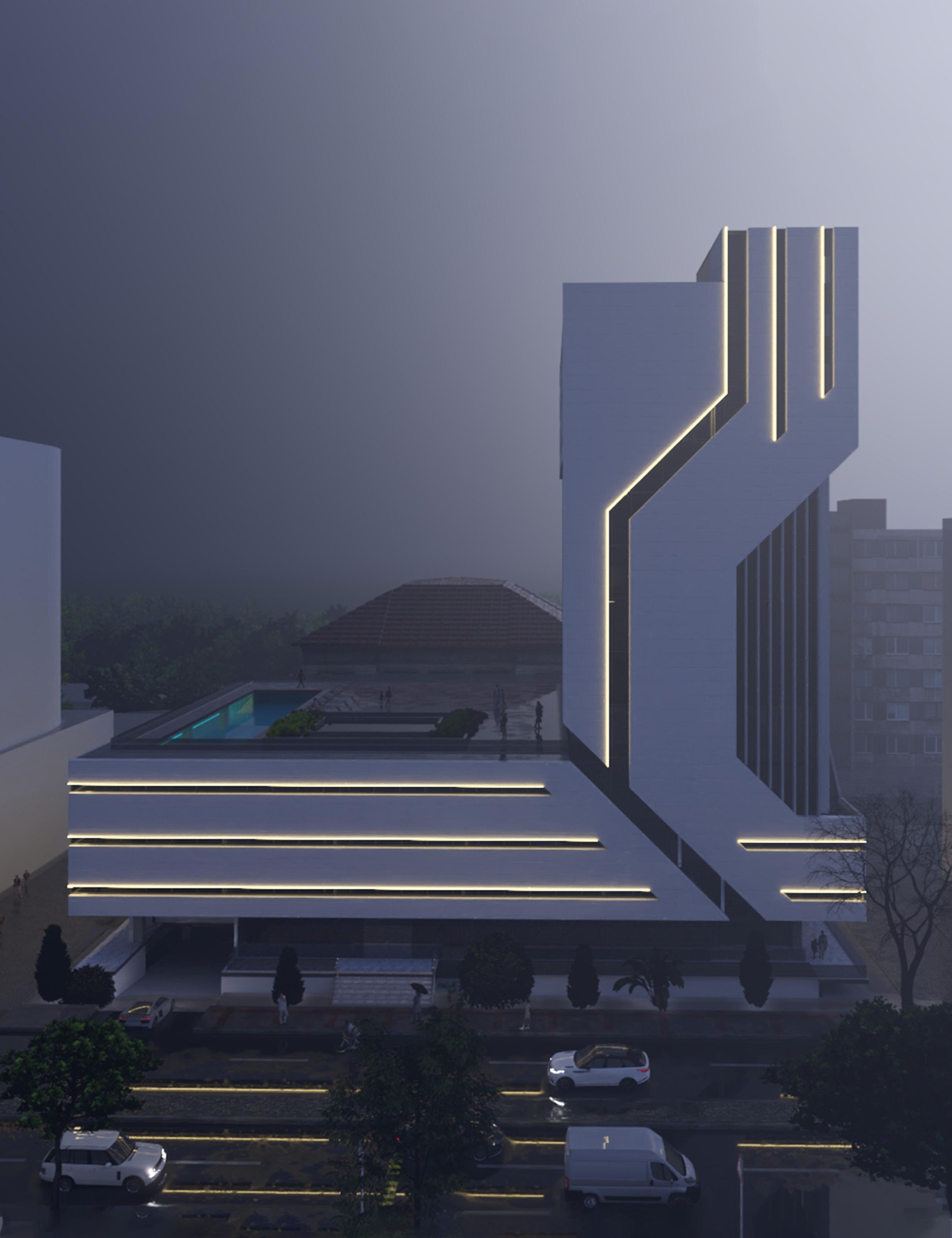 The design is inspired by the Adama Smart City vision initiatives.The building is a mixed use building that encompasses commercial zones,service zones,recreational centers, conference rooms, and residential units all in one interconnected space.