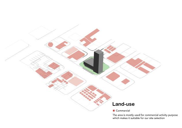 The site is in a high-rise zone of the city, permitted up to G + 12, though it is surrounded by some multistory buildings.