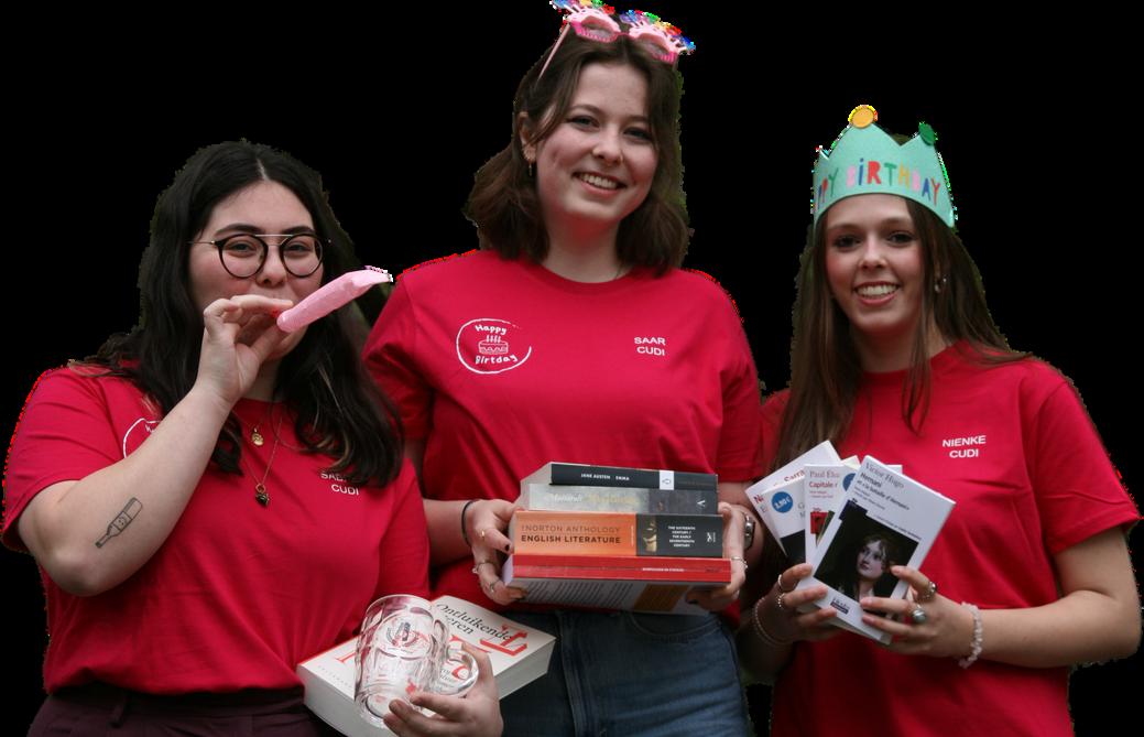 Hoi lieve studenten, Wij zijn Nienke, Sabrina en Saar en wij zijn opkomend cudi van de kiesploeg van taal- en letterkunde. Cudi, of cursusdienst, zal weer voor jullie klaar staan met, wie had het kunnen raden, cursussen! Wij zouden hiervoor samenwerken met proffen en met de Acco om deze aan een mooi studentenprijsje aan jullie te kunnen verkopen. Naast cursussen biedt de cudi ook merch aan zoals truien, stickers, codices en cantusglazen. In de kelder van het Erasmushuis zouden wij hiermee voor jullie klaarstaan, maar ook voor een gezellige babbel is iedereen steeds welkom in ons knusse cudikot.