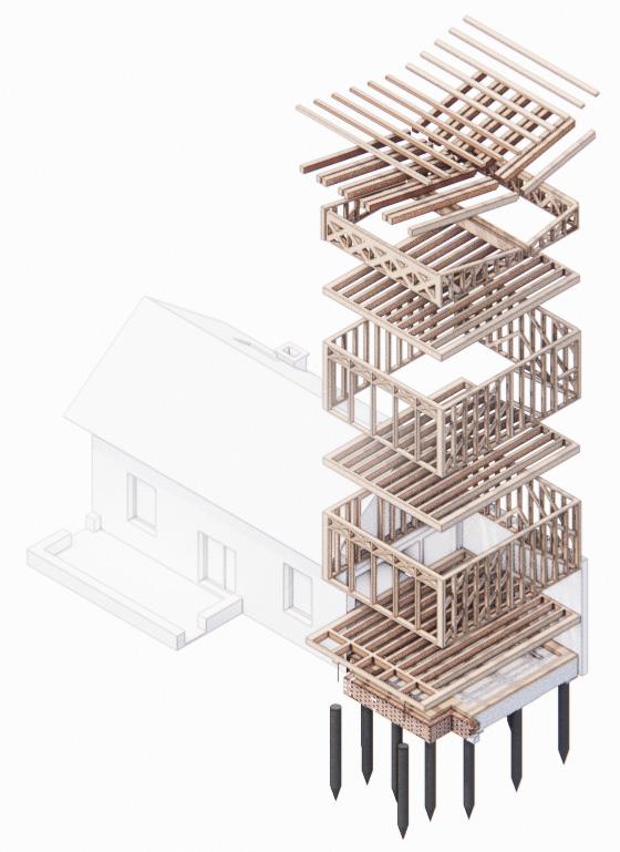 We sourced information from articles available illustrations and construction photographs of the site to come up with our analysis of how the building was constructed. The project culminated with a simulation of the construction process where we modeled a section replica of the building at 1-1/2” = 1’ scale.