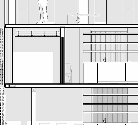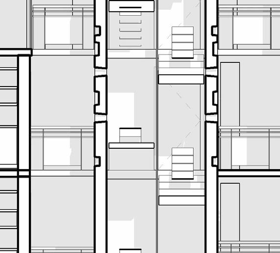 The design prioritized creating views for artists and of artists to invite prospective buyers of their art into their creation process and draw them all the way to the top where the main gallery was located. This concept manifested a design that relied on elements that strategically created or obscured visibility at the artist’s behest.