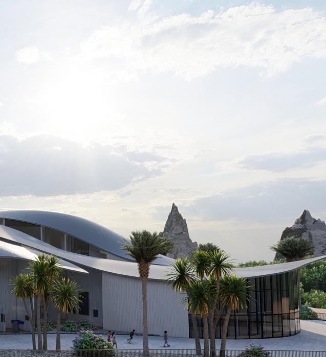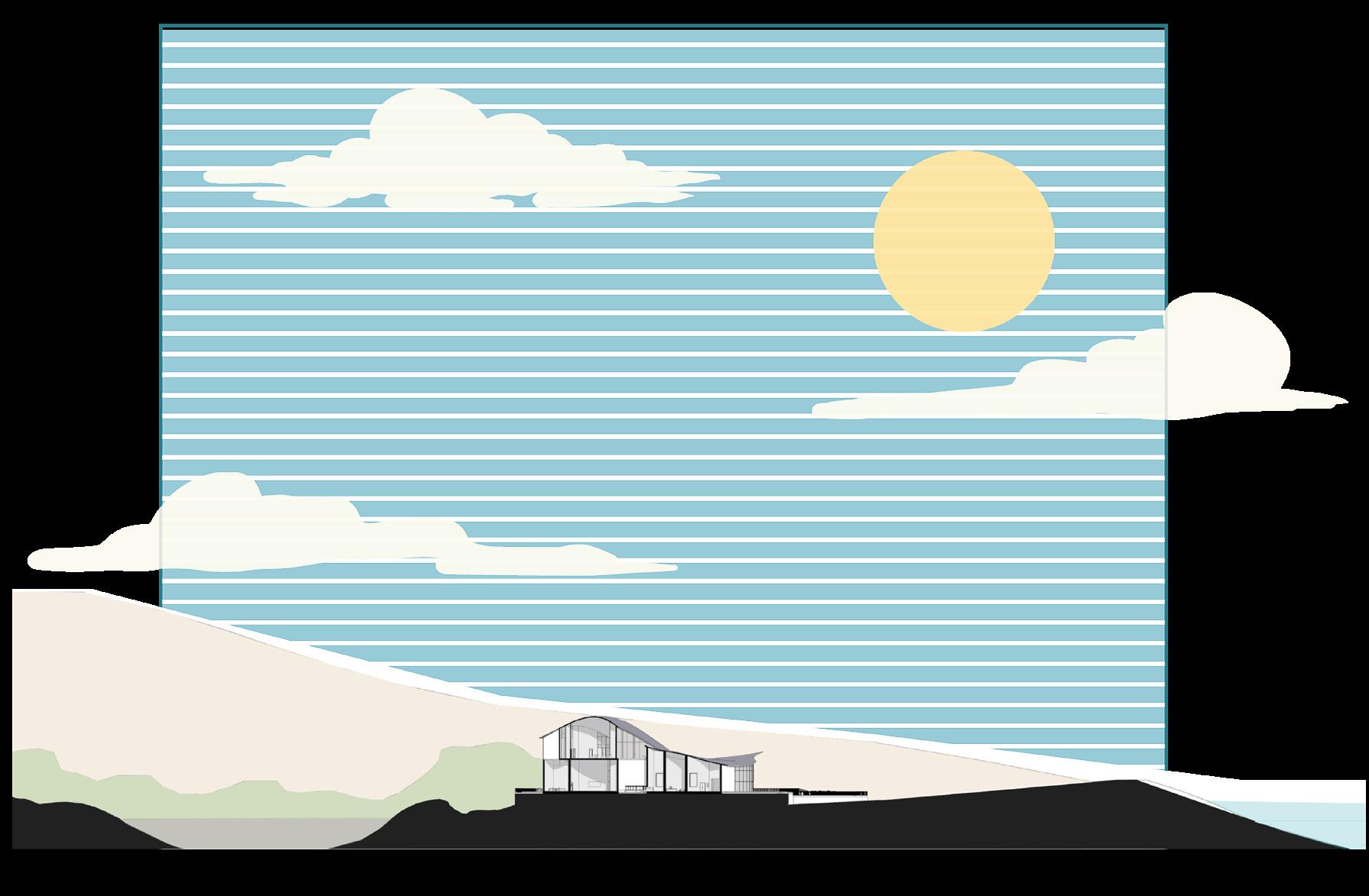 A focus in this site and consequently the design, is that this location is where sperm whale mothers migrate to to birth their children every two years. This fact inspired the form of the building as it mimics the momevement of mother and child whale through the ocean.