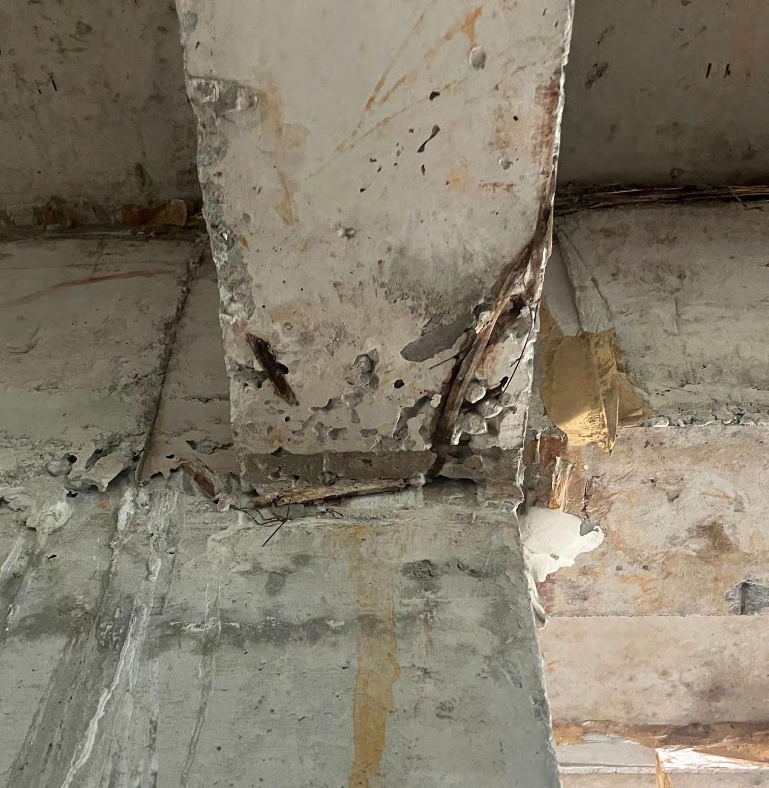 Columns have cracks at the starter joint due to poor shuttering. Beams casted are not in alignment with respect to the other respective beams on the same grid line, they seem to be curved and mis-aligned, beams are bulged at few places due to poor shuttering.