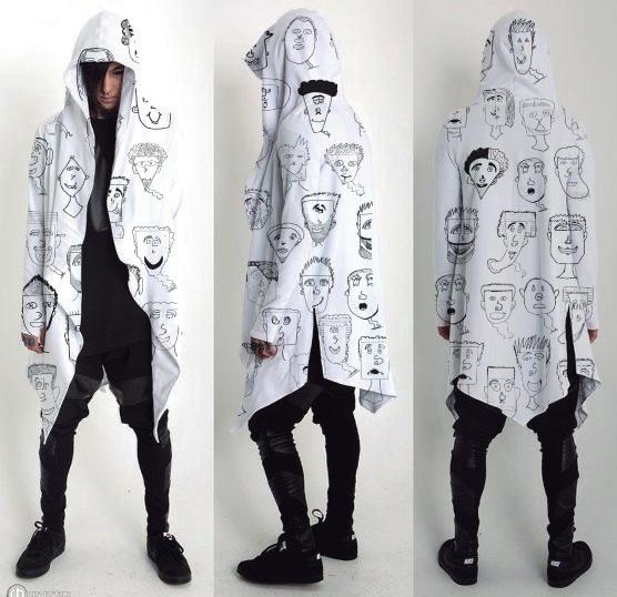 Esta pieza es un saco de sudadera, tipo hoodie, y a diferencia del mostrado previamente, tiene solo un diseño estampado y tiene resorte en el cuello y en la cintura, esta pensado para un un uso informal o casual. hemos hecho los prototipos en varios estilos. Liso o afelpado negro con estampado en terciopelo negro, liso o afelpado negro con estampado blanco, liso o afelpado blanco con estampado en terciopelo blanco y liso o afelpado con estampado en terciopelo negro.
