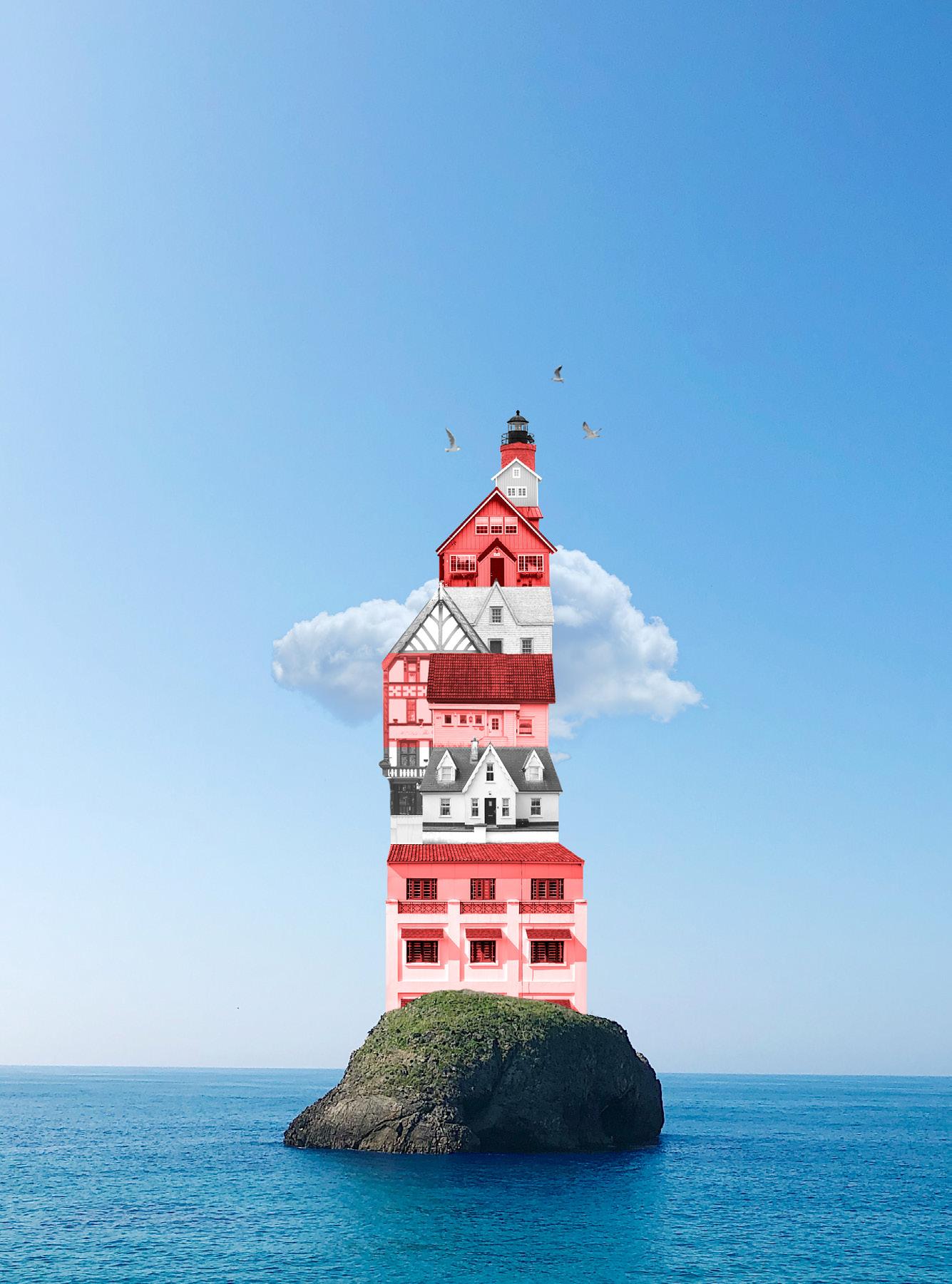 A small series of lighthouses using collage. 12-15 images are used per piece, using mainly architectural pieces to form the shape of the lighthouse.