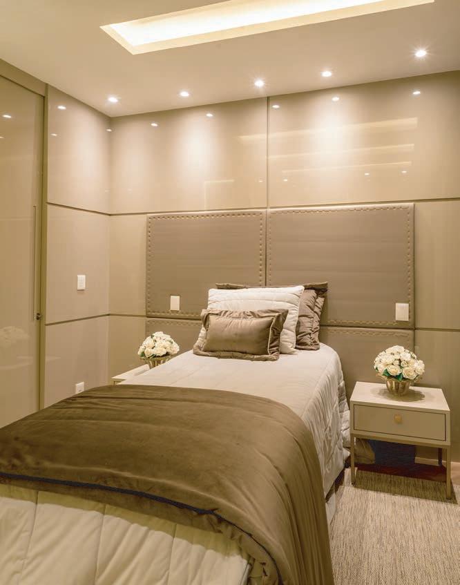 Com exceção da suíte máster, as outras três foram idealizadas para hóspedes. Uma terceira foi usada como sala de TV íntima. Todas foram decoradas com cores sóbrias.