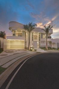 A Casa do Lago, projeto assinado pelo arquiteto Aquiles Nícolas Kílaris cercado de verde, foi idealizada com curvas e transparências que integram a paisagem e o imóvel. As águas cristalinas do lago também são cenário desta residêncialocalizada em Paulínia no interior de São Paulo. O terreno em desnível e de esquina, possibilitou um projeto ousado, elevando o imóvel acima do nível da rua com três entradas diferentes: subindo as escadas e chegando ao living; pela garagem-bar que fica no subsolo e pela área de lazer que tem acesso a rua. Todos os ambientes estão voltados para a mata e o lago, que ficam no entorno da casa. De qualquer lugar é possível contemplar o pôr do sol. Na área social do térreo estão o living, sala de jantar, cozinha, brinquedoteca, lavabo e o home theater. A cozinha dá acesso ao gourmet e também fica integrada ao jantar quando as portas/painéis de espelho estão abertas. No andar superior estão localizadas quatro suítes. A máster, em tons de bege, foi concebida com sala de banho e um espaçoso closet. O lazer completo possui churrasqueira, bancada sinuosa, piscina, spa, recantos de contemplação e vestiário, tudo integrado com a natureza ao redor. A garagem-bar, no subsolo, além de acomodar os veículos da casa é ambientada por uma sala de estar multiuso com bar, onde é possível jogar em um grande simulador ou dar uma festa!