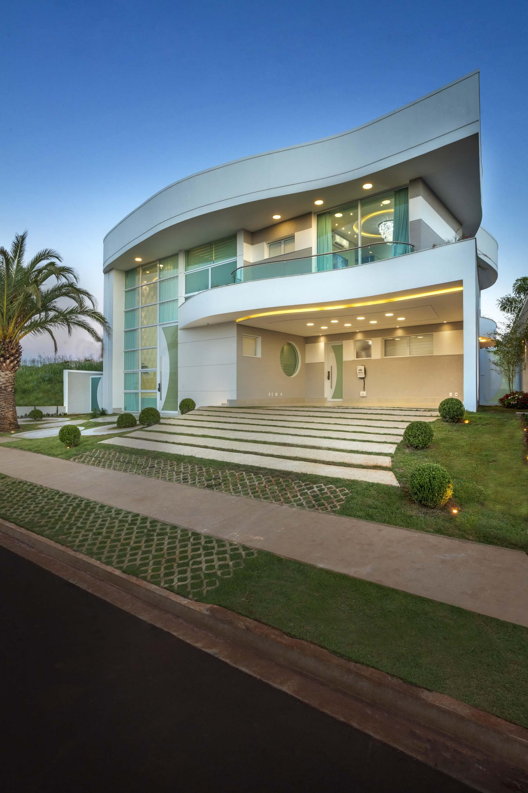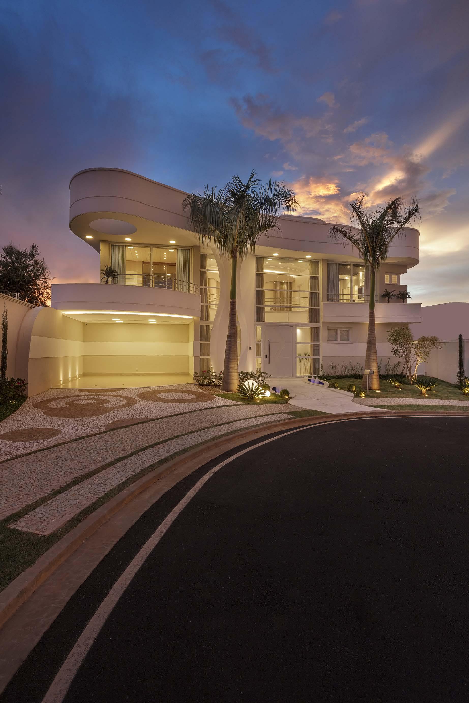 A fachada da Casa Bela Vista, que leva a assinatura do arquiteto Aquiles Nícolas Kílaris, é marcada pelas linhas curvas e formas arredondadas, estilo diferenciado que prevalece nos trabalhos do profissional. Elas estão presentes no desenho da varanda, na parede da garagem e no piso do jardim. As formas circulares também se repetem no projeto de interiores, assinada pela designer Iara Kílaris.