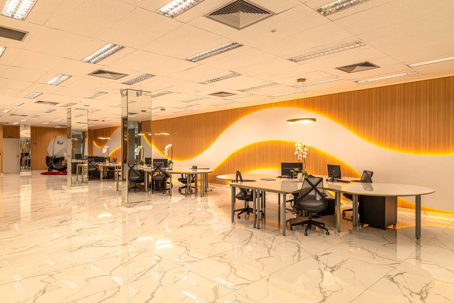 Espaços mais amplos, novas salas de reunião, de apresentação de projetos e atendimento de clientes, áreas de lazer e descanso, inovações tecnológicas, referências a elementos da natureza, com curvas e formas orgânicas presentes na fachada e no projeto de interiores. Esse é o conceito do novo escritório Kílaris.