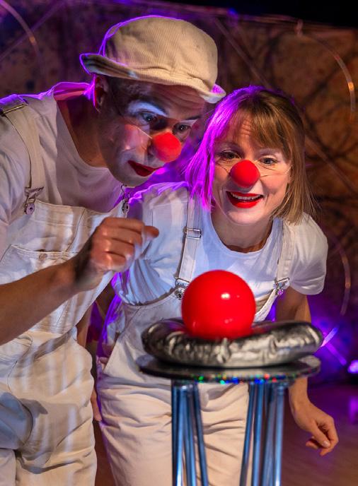 Møt to nysgjerrige klovner og en musiker som er på oppdagelsesferd i en verden litt utenom det vanlige. De finner mange spennende ting, og gjennom utforskningen oppstår sirkuskunster, musikk og lek. Klovneforestillingen Wow er non-verbal og en hyllest til barns lek, spontane kreativitet, fjetrende stillhet og tilstedeværelse. Etter forestillingen inviteres publikum til å komme opp på scenen og leke med klovnene. Under musikerens virtuose spill kastes silketørkler i luften, det danses med rockeringer og det sjongleres med baller.