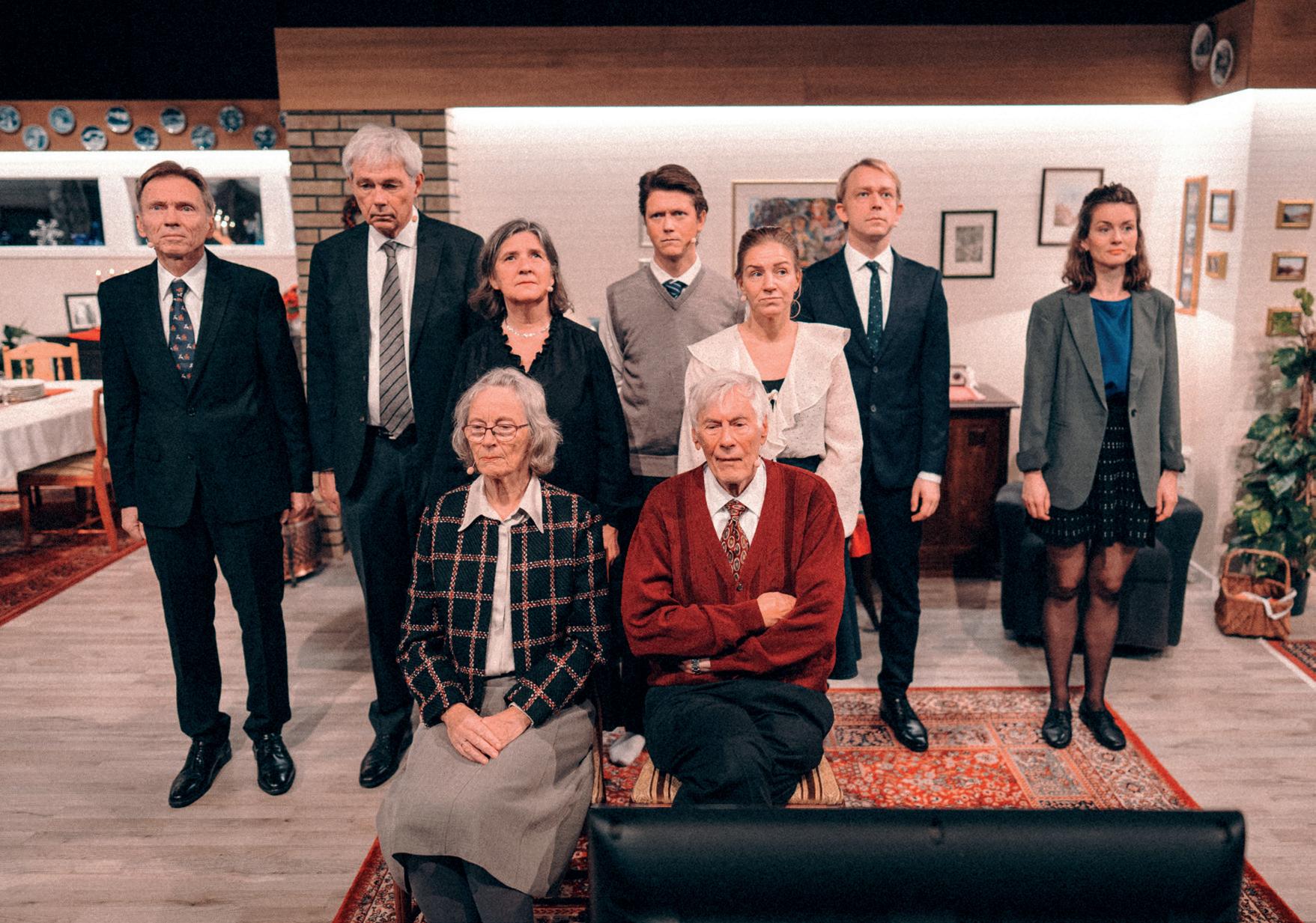 Ensemblet i forestillingen har et aldersspenn fra 35 til 93 år. De består av både profesjonelle skuespillere fra Kilden Teater og ikke-profesjonelle skuespillere. Det er ikke mindre enn imponerende det de får til og hvor overbevisende de er som familien Dvergsnes.