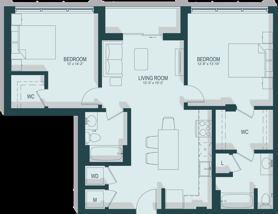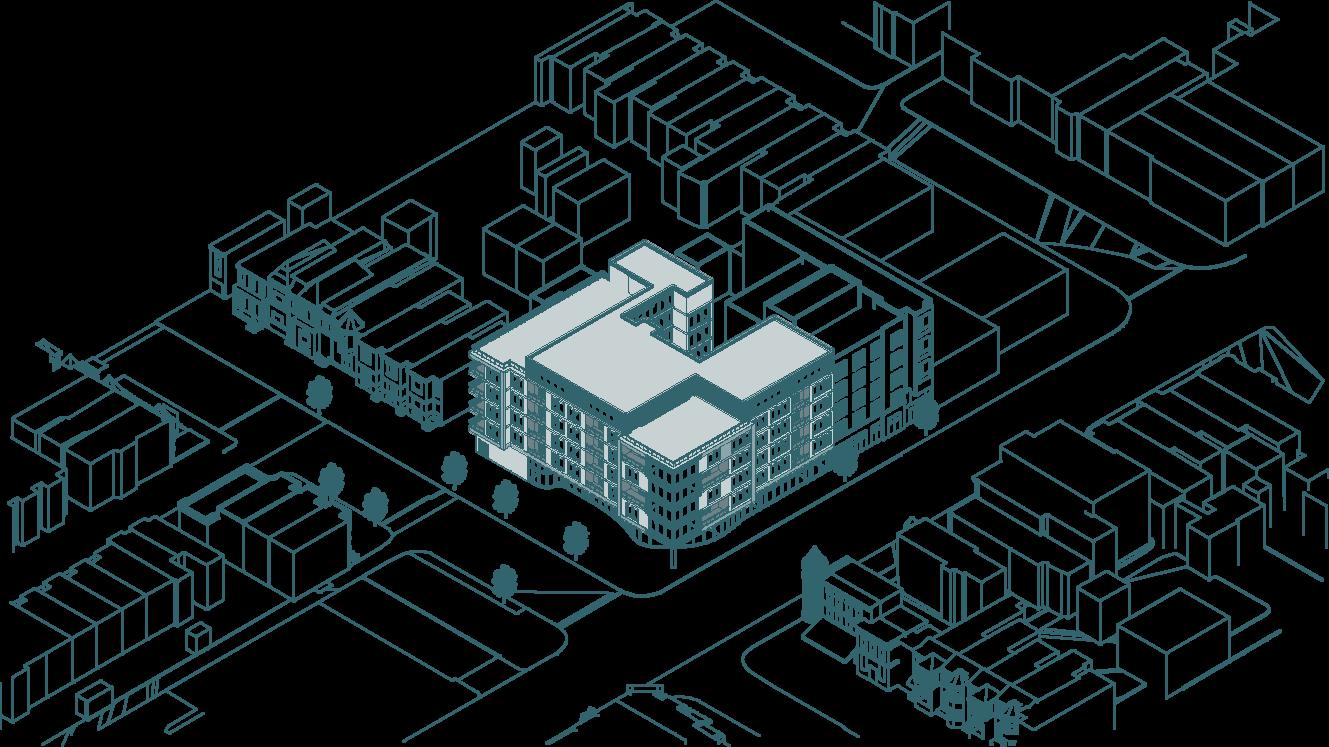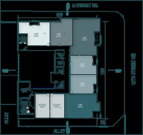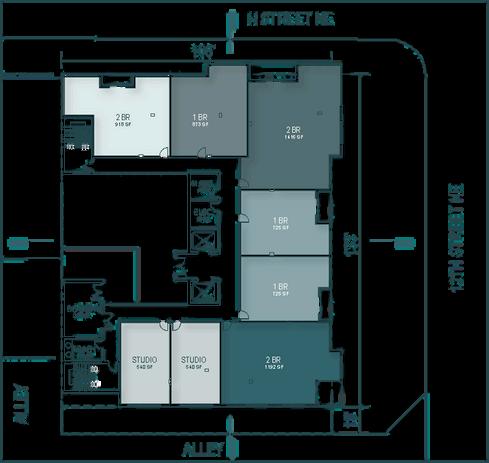 The double salient, located o Street and 12th Street, contai spacious, apartments that w their occupants to experienc The name originated to capt idea of the two protruding el on the building itself. The con behind the design is to accen and capture the corner of H and 12th Persuading movement and accessibility.