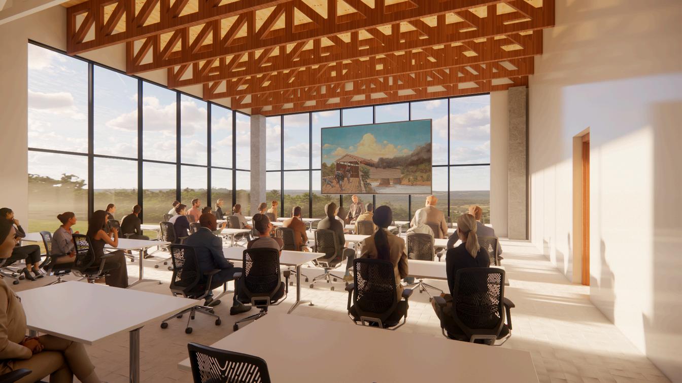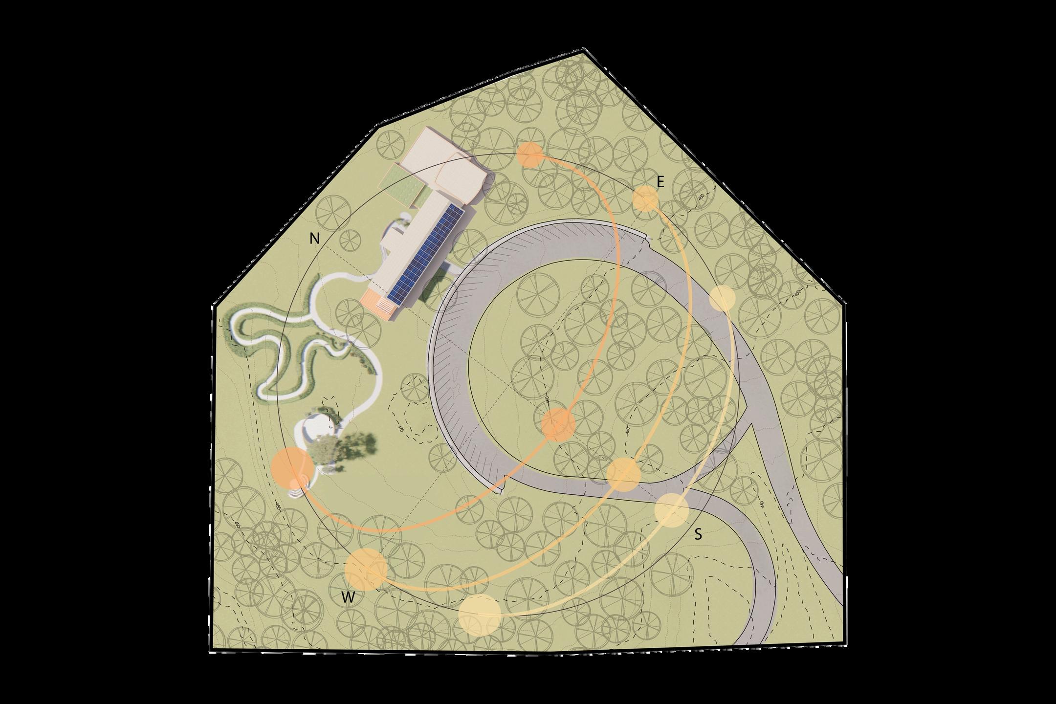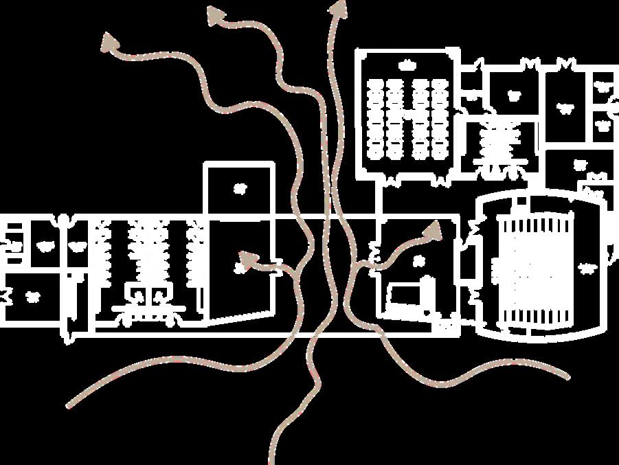 Our project is built around the idea of creating a visual and physical axis that guides visitors through the site. Once visitors engage with the primary axis, they are exposed to a secondary, perpendicular axis that intersects at the center of the building's mass. This intersection serves as a critical decision point where visitors can either enter the gallery, immersing themselves in the exhibits, or proceed further to the overlook, where expansive views of the battlefield await. This dual-axis design enhances the narrative of discovery, allowing visitors to choose their own path and experience the site in a dynamic, interactive way.