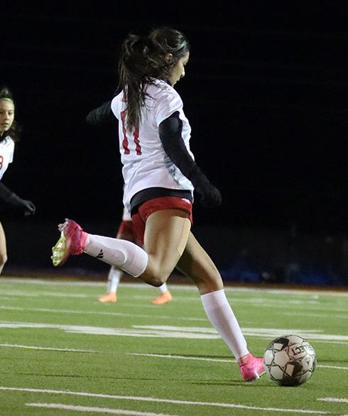 1) Powering Through• Sophomore Kyla Brown defends the ball against two players. Photos by Abigail Chavez. 2) Acting Fast • Mikel Dennis passes the ball. 3) Defense • Javon Towns maneuvers the ball past the opposing team. Photos by Jax Woods.