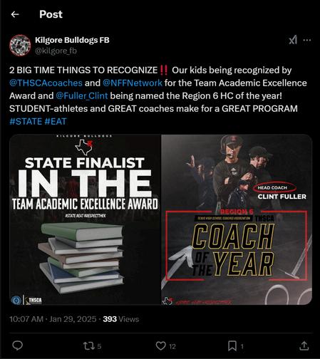 TheUILLoneStarCupisawardedannually tosixhighschools,oneineachofthesixUIL classifications(1A,2A,3A,4A,5Aand6A), basedontheirteamperformanceindistrict andstatechampionships.KISDiscurrently inthetop25!