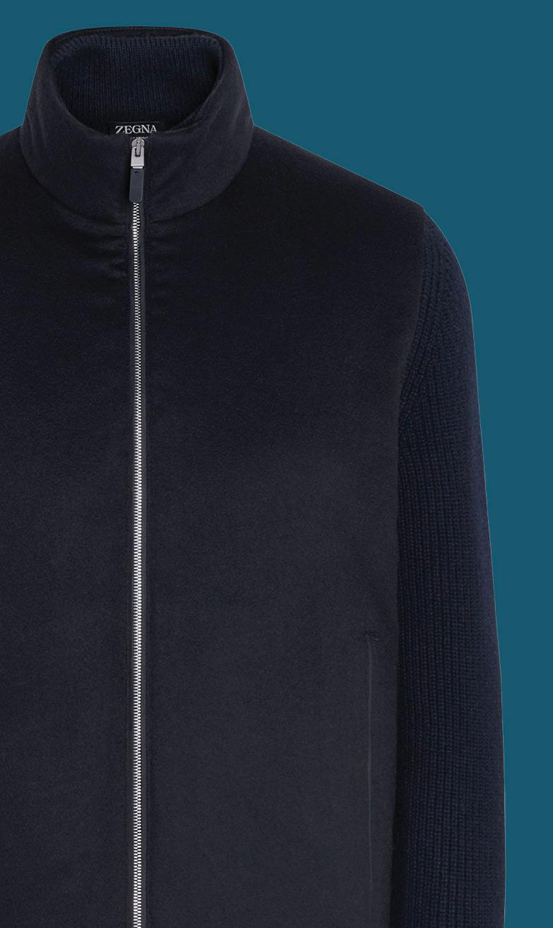 Showcasing ZEGNA’s vision of quiet luxury, refined elegance and effortless functionality, this navy blue Oasi Cashmere jacket is made from one of the brand’s most exclusive natural fibers.