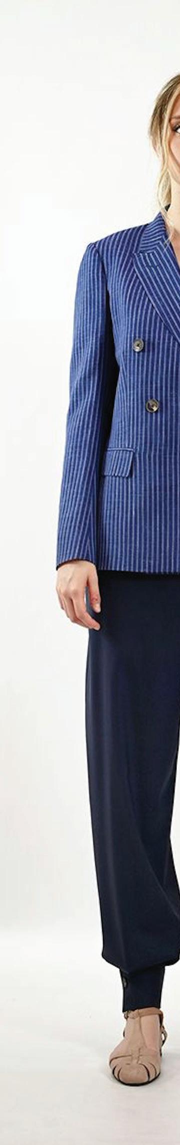 My pick for the season? Double breasted jackets. And I should rephrase this—Aside from the select few who already gravitate toward the style, I challenge my clients to try one. I’ve learned double-breasted jackets and blazers are extremely polarizing here in Cleveland, but you’ll rarely see a runway or a New York City sidewalk without one. The key to translating the style to your everyday life—don’t overthink it (and no, you’re not too short). Three of my favorites—all very different but easy to wear: High Blue Stripe Loro Piana tropical wool from QL2, cropped black leather from Vince, Classic slim boyfriend navy from Dorothee Schumacher.