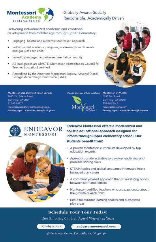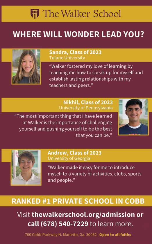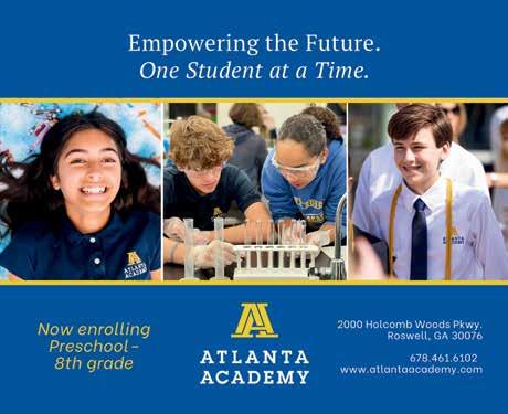 Atlanta School Guide, Summer/Fall 2024, Volume 19, Issue 2. Published bi-annually by Killam Publishing, Inc., 200 Market Place, Suite 230, Roswell, GA 30075. Atlanta School Guide assumes no responsibility for errors, changes or omissions. Information may have changed since press time, so please verify all information when contacting a school or educational resource. Reproduction in whole or in part of any elements of this publication is strictly prohibited without the written permission of the publisher. © 2024 Killam Publishing, Inc. For additional copies, further information or advertising, please contact: KILLAM PUBLISHING, INC. P: 770-873-9390 F: 844-706-1545