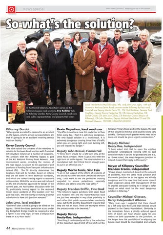 Deputy John Brassil, Fianna Fail “I think there should be a left turn only at the Lewis Road junction. There is great risk with the right turn on to the bypass. The other solution is a roundabout but I don’t think there's enough space to put in an effective one.”
