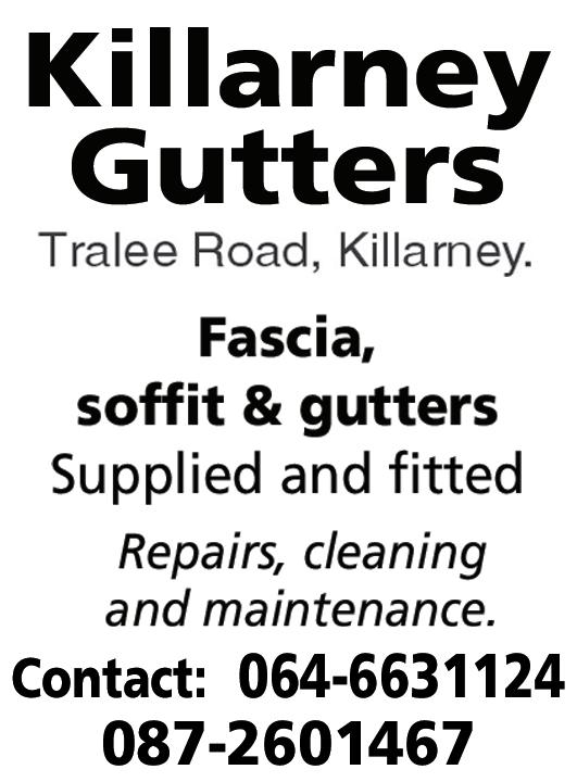 © Published by KILLARNEY ADVERTISER LTD. Printed by KILLARNEY ADVERTISER. This product is 100% recyclable –please recylce when used. © All artwork by the Killarney Advertiser and third parties in this issue are protected by Copyright. The Killarney Advertiser reserves the right to alter the content or omit of any advertisement before publication without prior notice. © The Killarney Advertiser reserves the right to rufuse any publication of ads or articles as it sees fit. A refund will be permitted for any ads placed and paid for, but not printed. YOUR LOCAL SEWERAGE TREATMENT SERVICE MAN SERVICING KERRY & SURROUNDING AREAS • BIO UNITS, SEPTIC TANKS • PUMPS, AIR BLOWERS AND SUBMERSIBLES